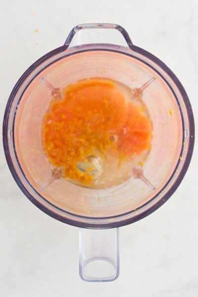 - In a blender or in a bowl, whisk together the eggs, coconut oil, apple cider vinegar, and orange zest.