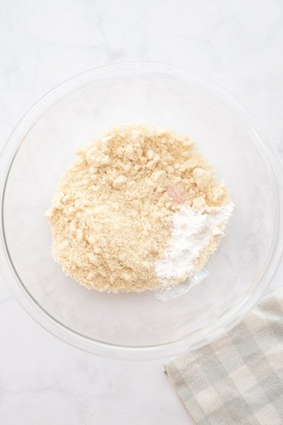 • W dużej misce wymieszaj mąkę migdałową, proszek do pieczenia i sól.